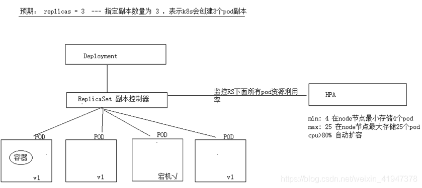 - 2、rs副本控制器,控制pod的数量与预期的数量保持一致,rs副本控制器就是来管理pod.