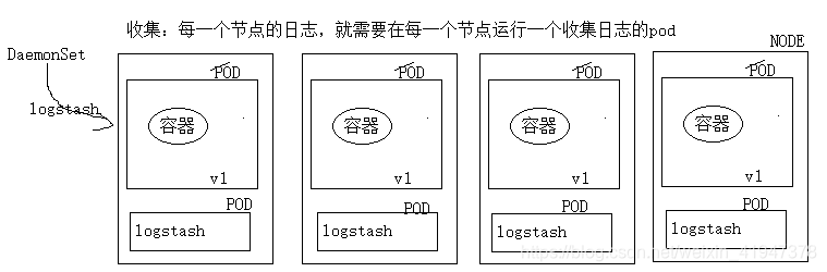 - 2、在每个Node上运行日志收集Daemon,例如:fluentd、logstash.