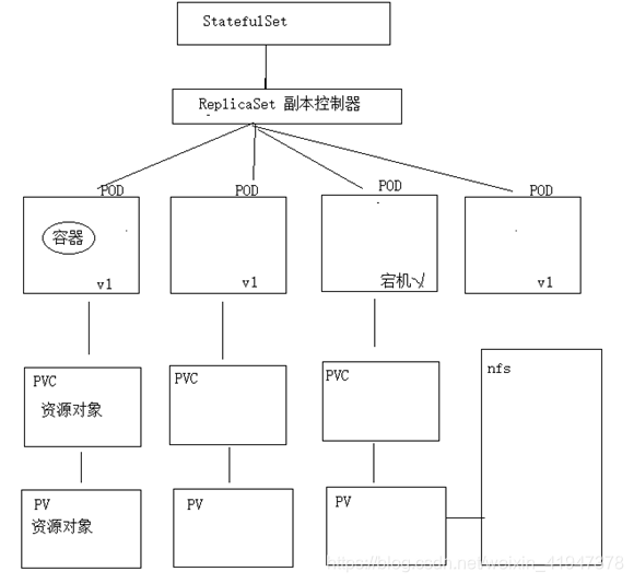 Statefulset模式下,pod的数据卷就不是volume,而是两个持久化存储资源对象PVC和PV,PVC下面挂载PV