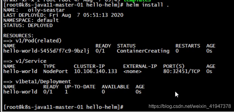 # 使用命令 helm install RELATIVE_PATH_TO_CHART 创建一次Release