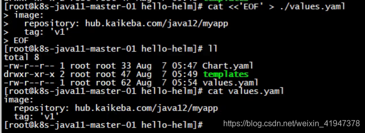 # 创建自描述文件 Chart.yaml , 这个文件必须有 name 和 version 定义