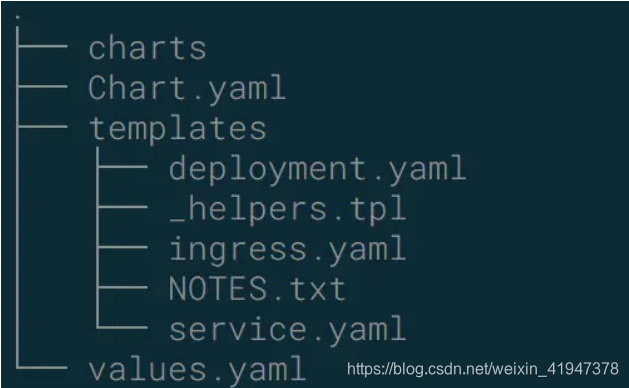 Helm的打包格式叫做chart,所谓chart就是一系列文件, 它描述了一组相关的 k8s 集群资源。Chart中的文件安装特定的目录结构组织, 最简单的chart 目录如下所示:
