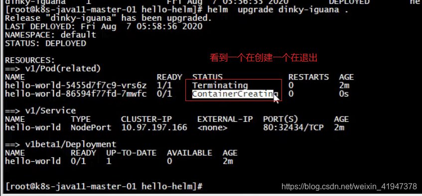 - Tiller 将新的 release 传递给 kube-apiserver 进行更新