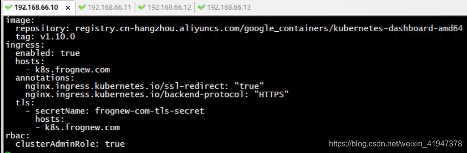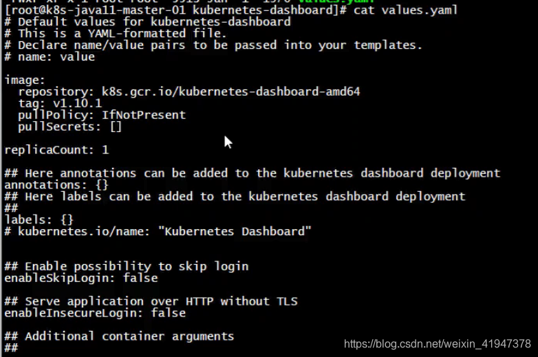 # 编辑dashboard.yaml文件(相当于values.yaml)