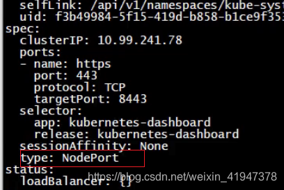 kubectl edit svc kubernetes-dashboard -n kube-system