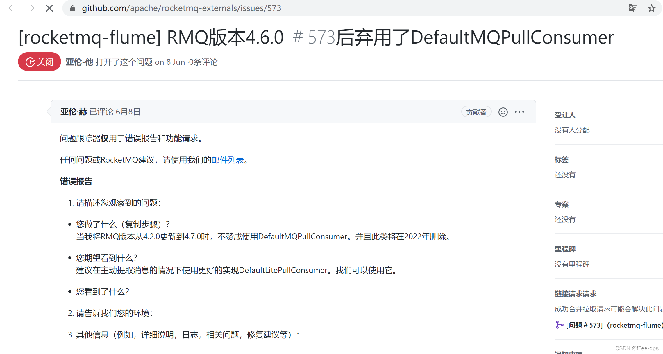 注意:RocketMQ 4.6.0版本后将弃用DefaultMQPullConsumer,DefaultMQPullConsumer方式需要手动管理偏移量,官方已经被废弃,将在2022年进行删除