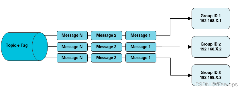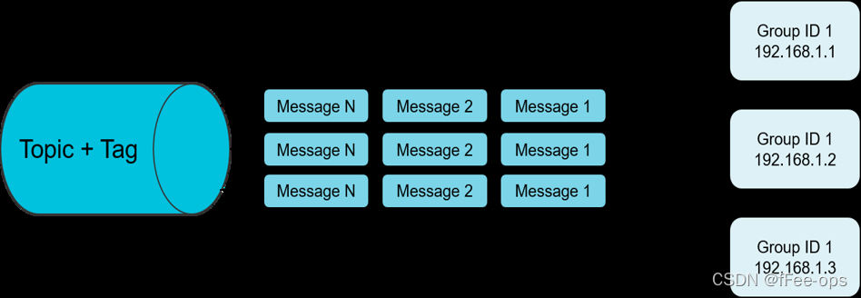 使用相同 Group ID 的订阅者属于同一个集群,同一个集群下的订阅者消费逻辑必须完全一致(包括 Tag 的使用),这些订阅者在逻辑上可以认为是一个消费节点