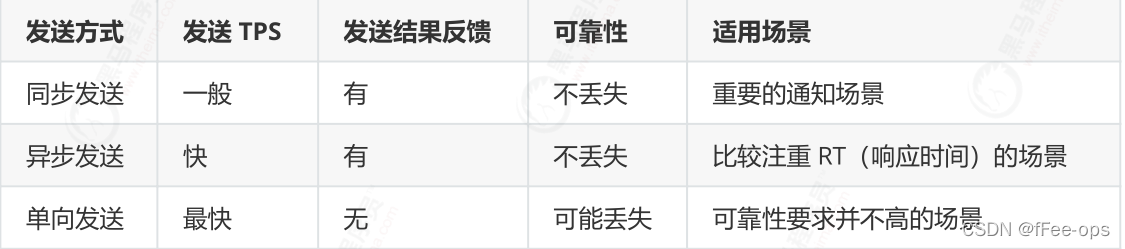 使用场景 由于这种同步发送的方式确保了消息的可靠性,同时也能及时得到消息发送的结果,故而适合一些发送比较重要的消息场景,比如说重要的通知邮件。