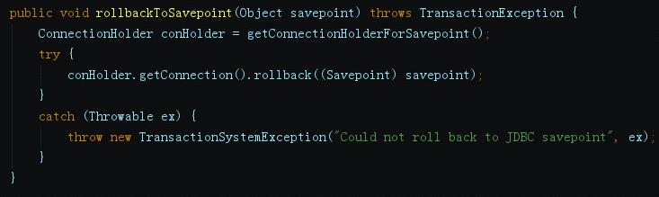 然后就是我们目标业务方法的执行了,根据执行结果的不同做提交或回滚操作,我们先看一下回滚操作: