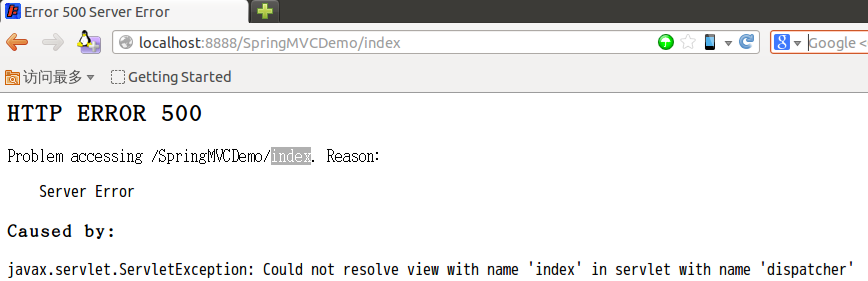 如果我们把viewNames中的”*”改成”index1″。那么就报错了,因为处理视图名的时候index匹配不上index1。
